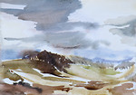 I walked last week up to a band of dark pine trees on a steep hill - it seems a gateway - to come out into aubergine and old banana moors.